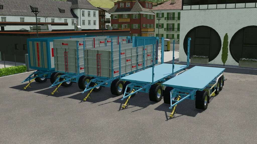 Trailer for transporting pallets of “liquid fertilizer, herbicide, silage additive” with automatic loading and unloading