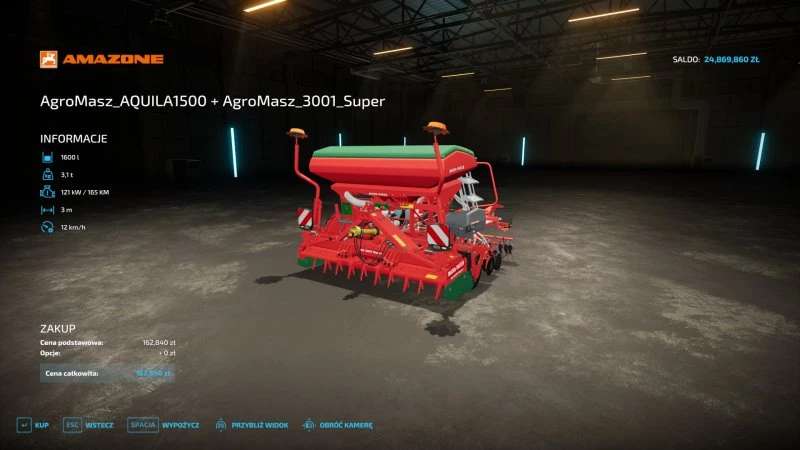 Hello, I’m playing on a JockerFarm save in Szpakowo and I missed the Agromasz seeder model in the available mods that the above-mentioned farmer has, i.e. the AQUILA 1500 model, so I changed the colors and stickers in the original seeder from the base game, i.e. the Amazone Centaya3000Super, which looks almost identical to the AQUILA. Maybe it’s made under license? I don’t know. That’s why I’m sending it to those who watch JokerFarma videos and everyone who likes the AgroMasza brand. The stickers replace the original ones, so it’s not in accordance with the real layout, such a small tinkering but it’s always better than nothing. The construction itself remained original. The rest of the machines for work on this farm were assembled from existing mods. Have fun.