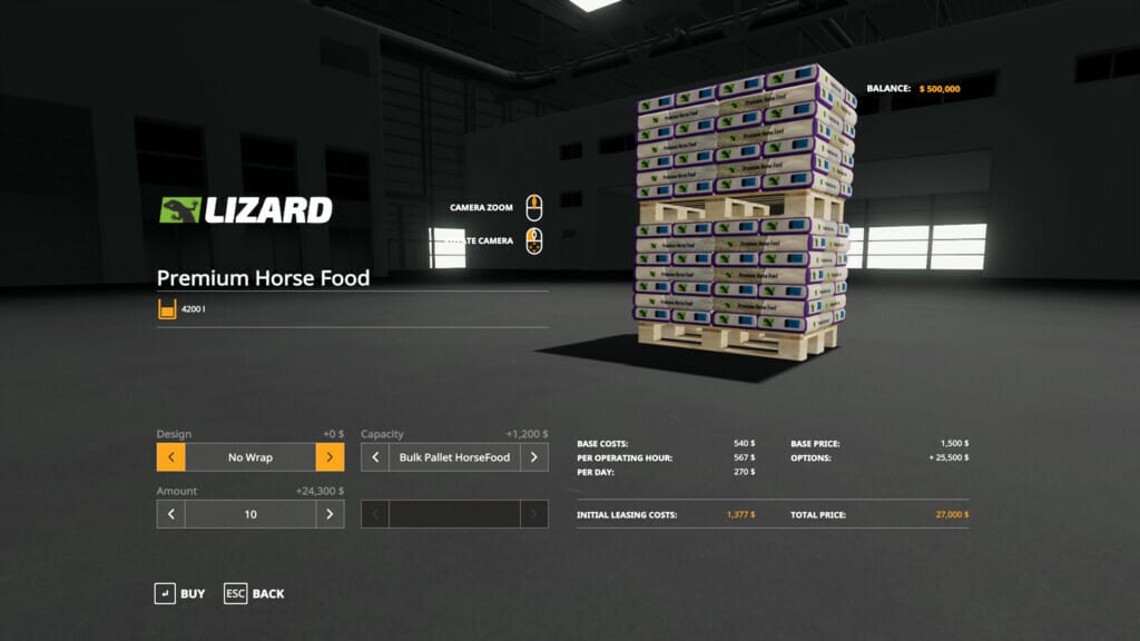 This mod allows you to purchase up to ten pallets or big-bags from the shop in a single transaction. Select the required amount before you purchase. If there is not enough room to deliver the full amount, then you will only be charged for the items that you have received.