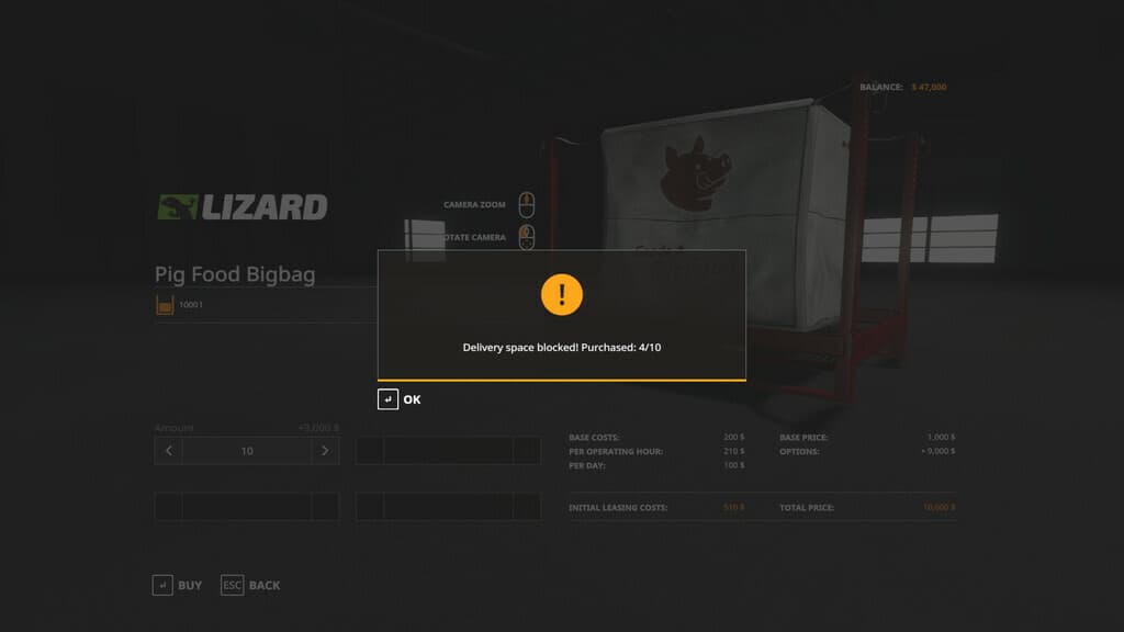 This mod allows you to purchase up to ten pallets or big-bags from the shop in a single transaction. Select the required amount before you purchase. If there is not enough room to deliver the full amount, then you will only be charged for the items that you have received.