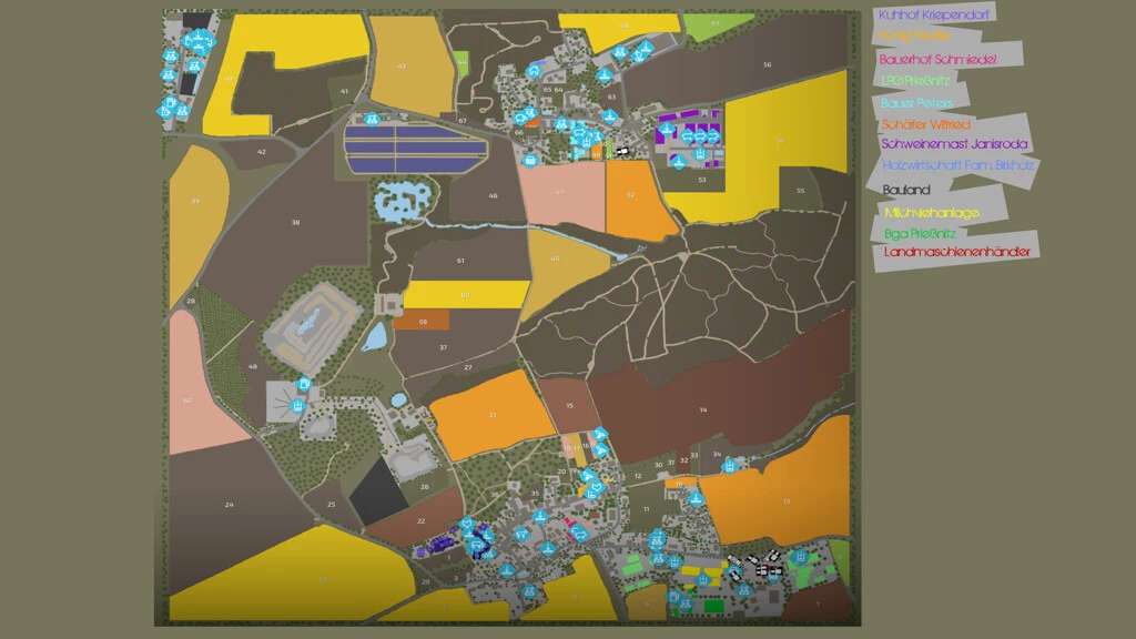 Gates at the dealer, cement plant, grain mill and dairy now have opening times which are only open at certain times (when you start the map for the first time, these gates will only open at the next hour change).