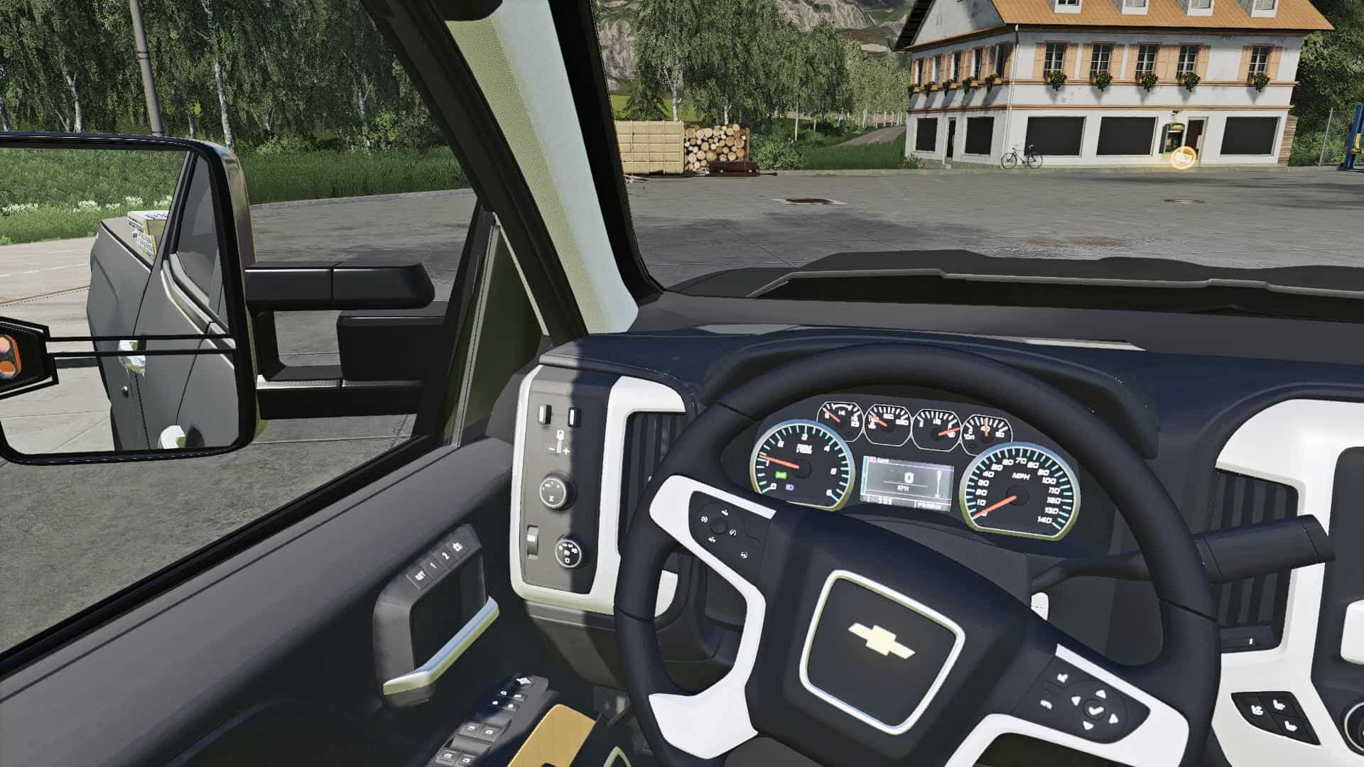 Full modeled interior with dash lights, working dials, and shifter animation.
