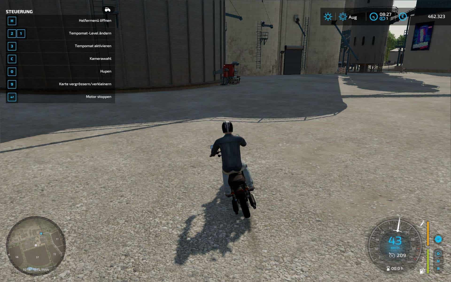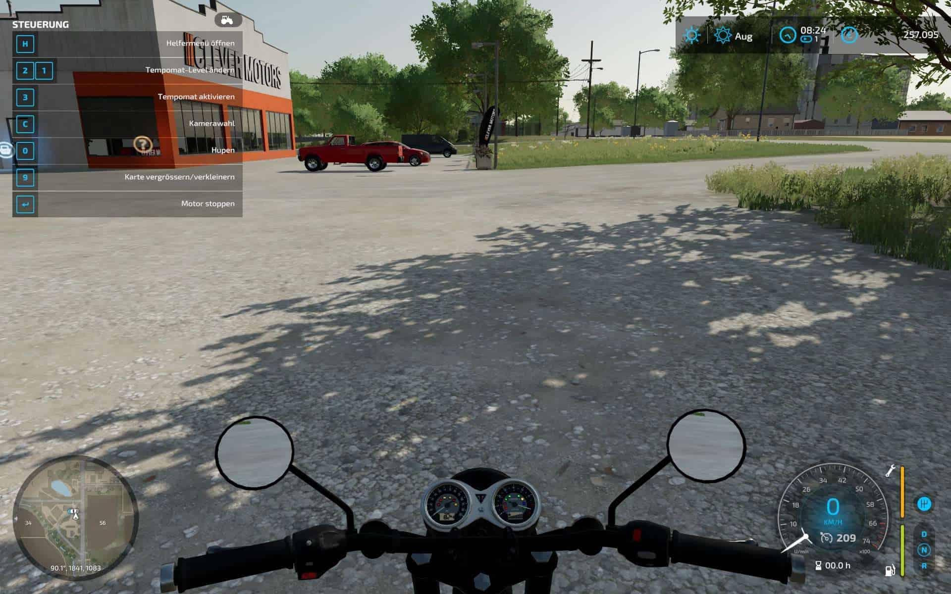 high beam, time display (ingame time), gear shift display, indicator lights of