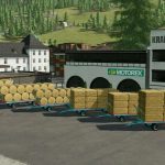 Bale trailers for manual or automatic bale transport supporting different bale sizes.
