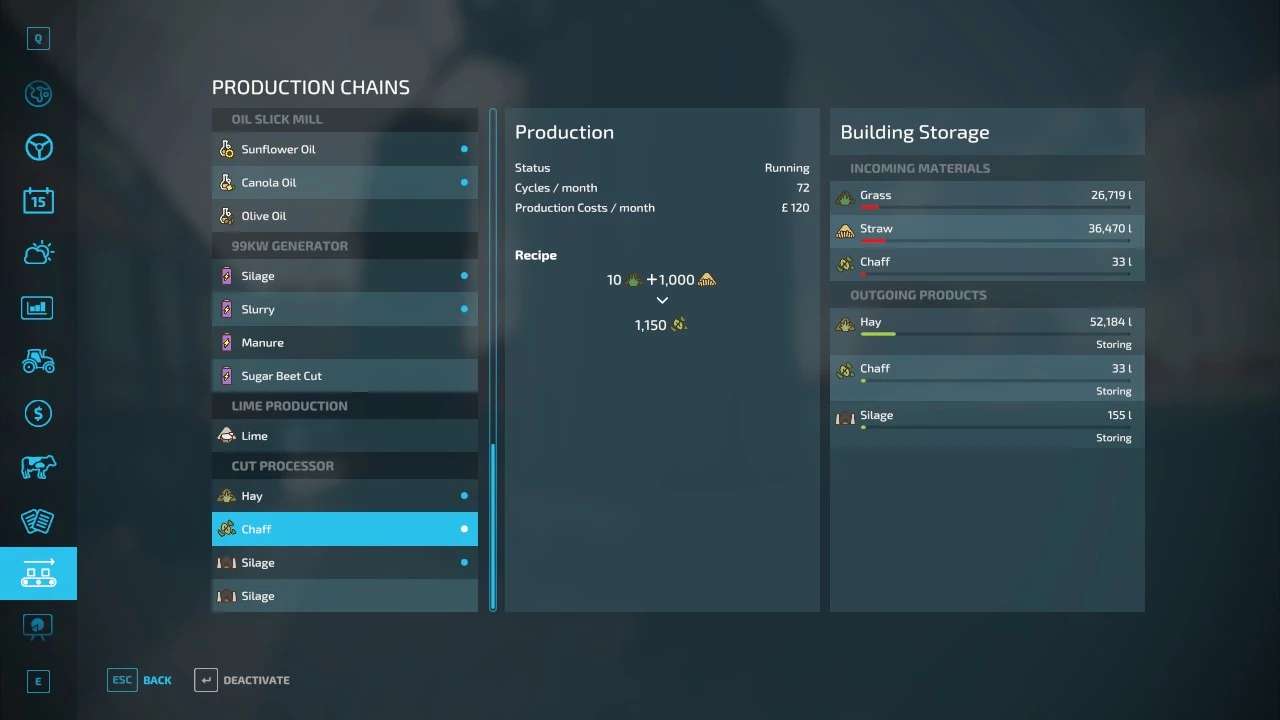 The Cut Processor deals with anything you can cut; grass, hay, silage, straw and chaff. It is a way to output some of the cheaper stuff to more expensive stuff. Some details:
