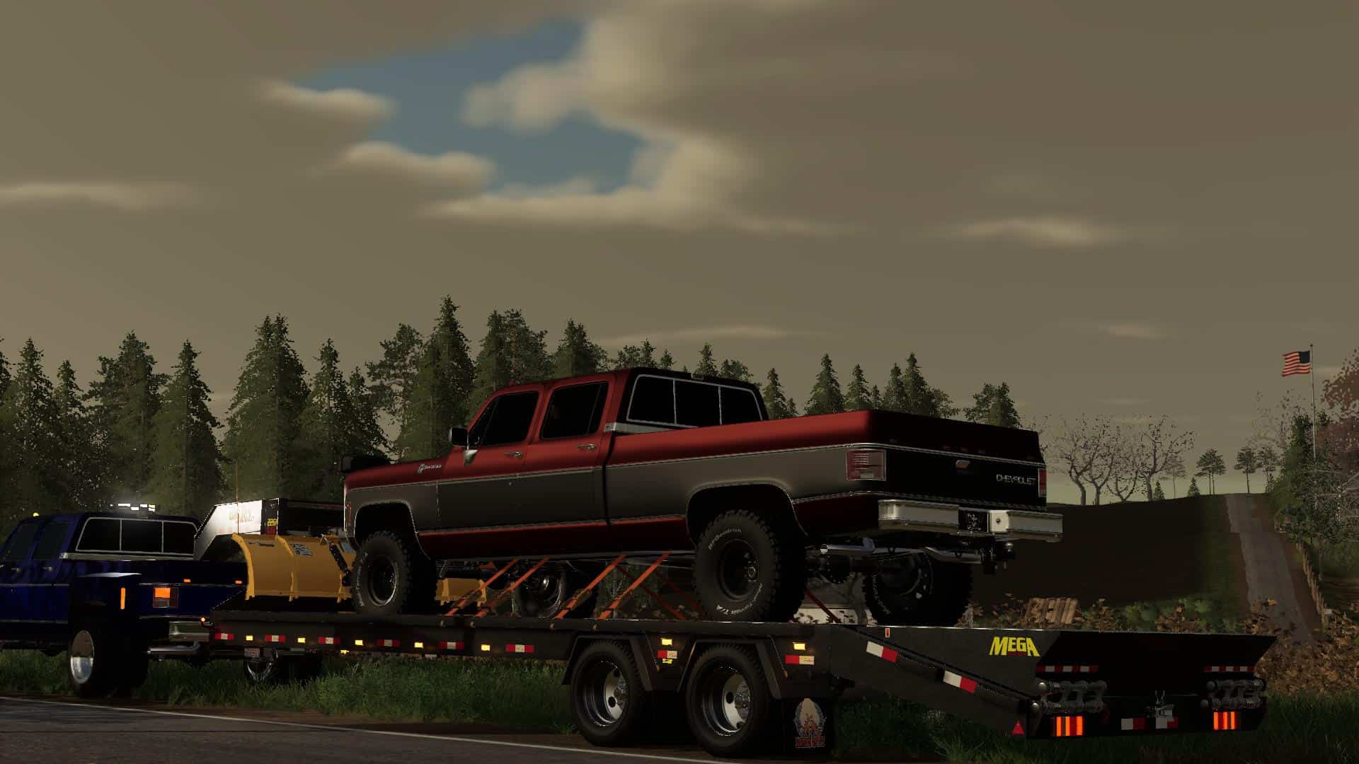 The mod has wheel choices for both SRW and DRW options as well as grill, mirror, plow mount and lightbar options. It is also strap-able to keep it tied down on your trailers.