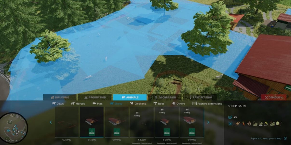 With this mod it is possible to expand husbandries and pastures that are prepared for this purpose. This means that the animals can use all the areas you make available to them.