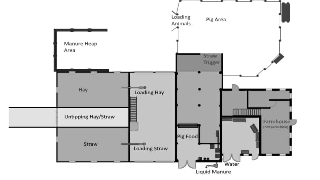 – For Manure, there are two variants of the building: in one version, the manure is stored on a manureheap outside the buidling, in the other one, the manure appears in the pigsty.