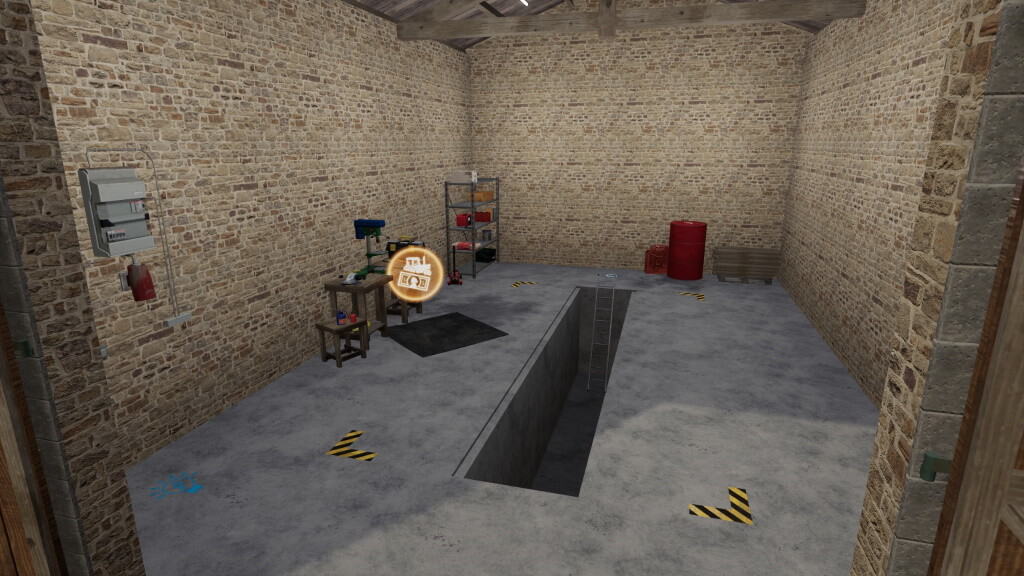 Here is a pack of two French workshops, where you can repair your vehicles. A Wekstatt is with pit, which can be uncovered. There are logos on the ground to indicate the locations of the triggers for the animations.