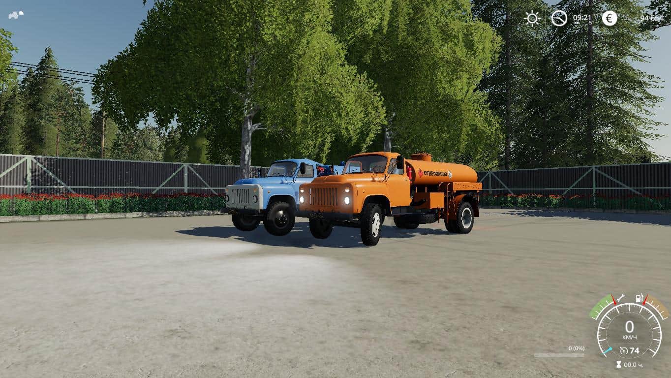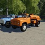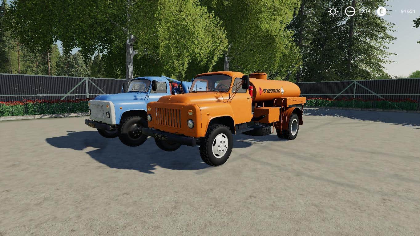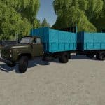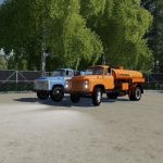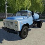 GAZ-53-3.5 ton truck with rear drive axle produced in the USSR from 1961 to 1993. Pak includes a modular truck GAZ-53 single-axle trailer and eight modules to the truck. The same modules are installed on the trailer as on the truck. Modules: – milk tank-5,000 liters (milk and water). – fuel tank – 4 500 liters. – universal tank – 4 000 liters (liquid fertilizers, herbicides, slurry, digestate and water). – on-Board body with automatic bales and pallets and collision of sides for transportation of dynamic objects. Bulk cargo does not take. – body for bulk cargo-4 200 liters (can fill seeders with seeds and fertilizers). – body for bulk cargo with extended sides – 6 500 liters. – silo body-10 000 liters. – body for transportation of cattle-2 cows, 2 horses, 6 sheep, 5 pigs. There is a choice of engine, wheels, color and design, working lighting, mirrors and dashboard, UDIM textures. Gets dirty and washes. V. 1. 2. 0 changelog: + added uniaxial trailer for modules; + added rocking mudguards, antenna and some elements on the modules; + added awnings on the bodies for bulk cargo and silage, as well as on the side body; + added reflectors on the modules; + / – setting the engine and chassis; + / – corrected unloading from the modules; + / – corrected the camera; + / – some visual adjustments.V. 1. 2. 0 list of changes: Changed the steering wheel, adjusted the size of the track on the trailer, corrected the fuel barrel and the barrel for slurry, other minor improvements.