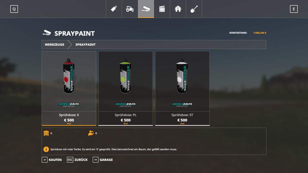 You can use this mod to mark all coniferous trees with three different markings. Buy the spray cans you need in the shop!