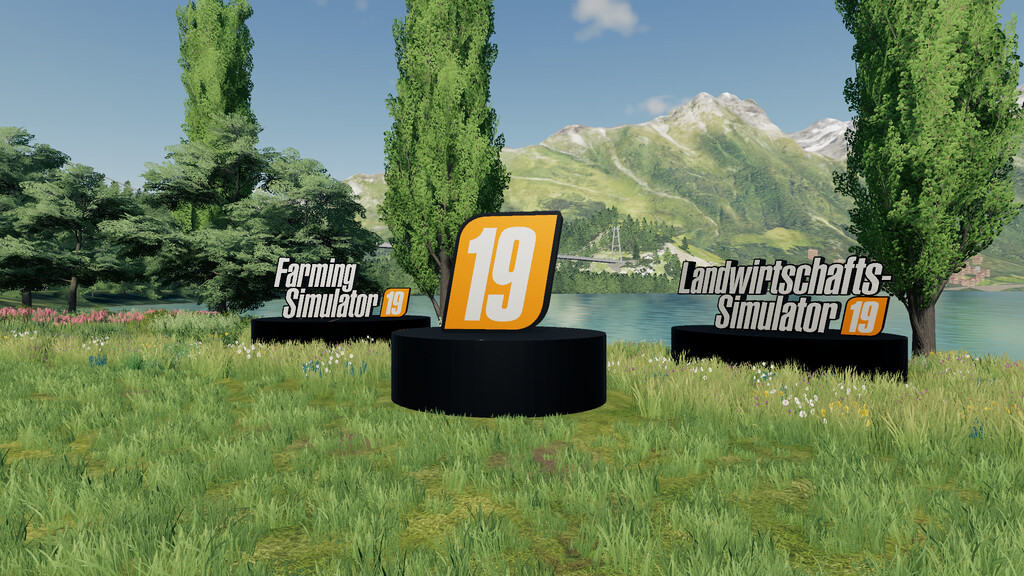 This pack contains 3 placeable FS19-Logos for decoration with an illumination function during nighttime. There is one version in English, one in German and one with the big 19 only.