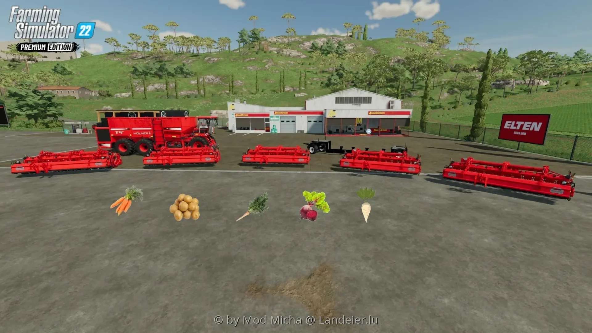 The Holmer TerraDos T4 and the cutting units can cut potatoes, sugar beets and Harvest the new fruits from the Premium DLC.
