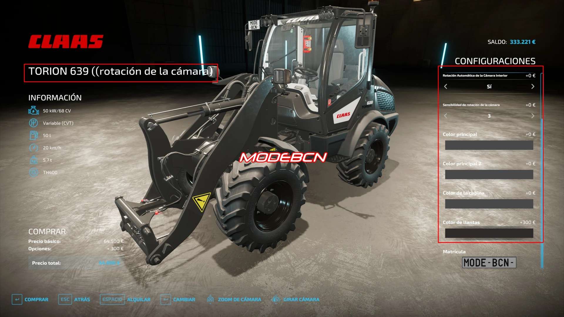 Translation of the FS22_IndoorCameraAutoRotation mod to Spanish ,just unzip the file and drag the content into the mod.