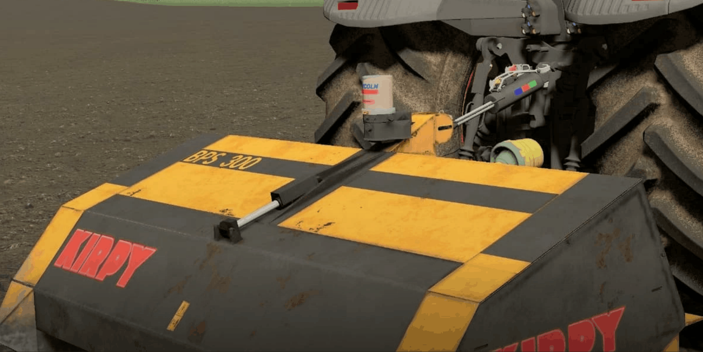 Here is the Kirpy BPS 300 stone crusher which can grind to a depth of 25cm. The rotor is equipped with 40 carbide hammers driven by a belt drive and a walterscheid cardan shaft. It is fitted with Lincoln centralized lubrication as standard.
