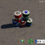 HELLO to all, I present you the mod FS19_Liquid_Barril_V1.2_BY_BOB51160, The objects can be found in the category pallets at the dealer of the machine. If they are empty, they disappear automatically.The barrels have a capacity of 200l each with a different liquid and also the price also see photos included. Good game to all.