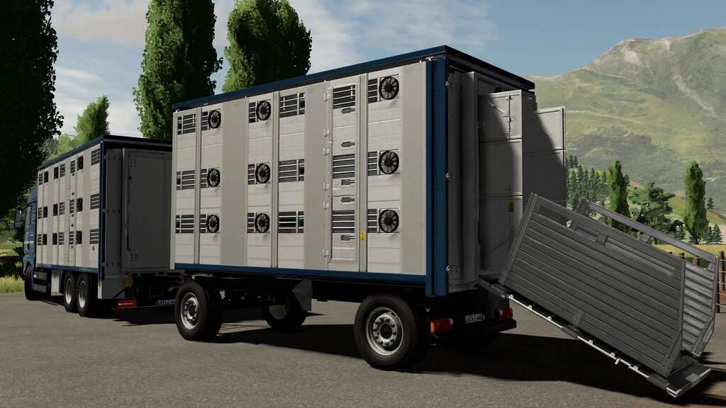 – Trailer: 26 pigs, 20 sheeps, 12 cows