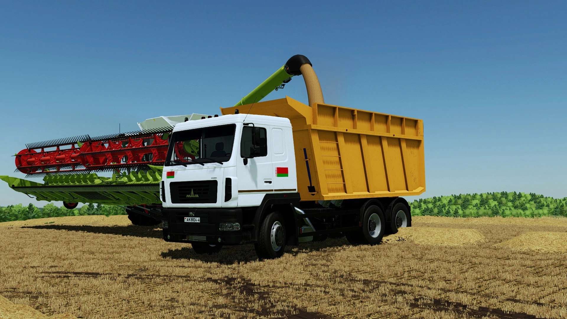 – Interactive Control support (opening the driver’s door, hood, glass, raising the cabin, turning on the light in the cabin, installing the “Harvest” sign, installing a flag on the driver’s mirror on the door)