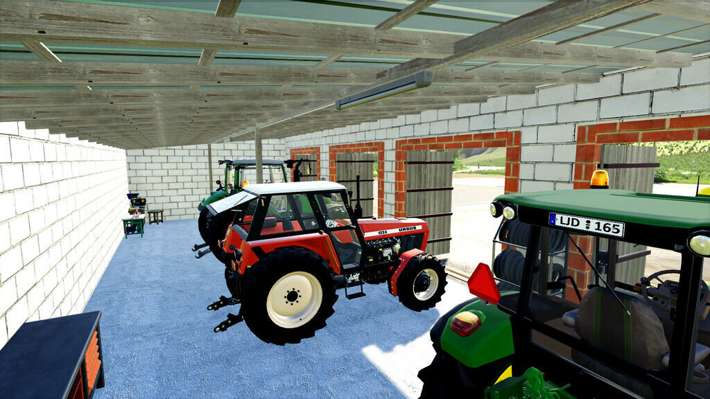 Medium and small garage with solar panels for agricultural machinery. Solar panels give you 150€ to 350€ daily depending on the difficulty of the game. Every garage is Seasons-ready.