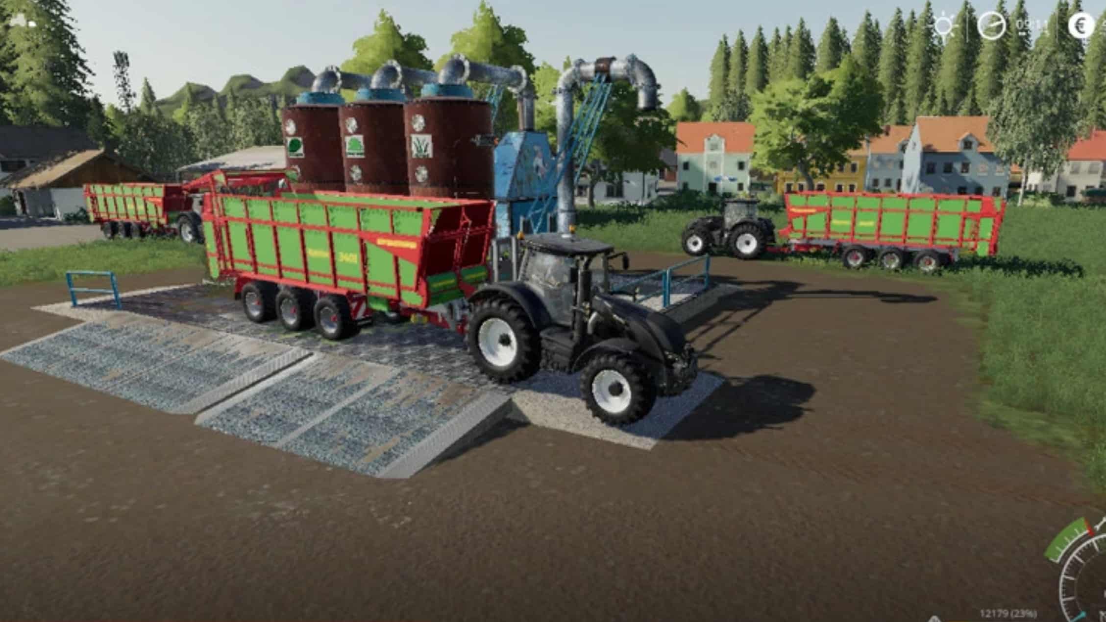 It is also possible, to use the system as an interim storage facility. Compared to straw and grass, more silage is required. The price is 120,000 € The external dimensions are 22.5m by 27.5m. There are 3 places on the system, but the tilt trigger is installed as a single object. It doesn't matter where you tip over. This has the advantage that you can use the course play to access the system can start off well. You can find this mod under the category "SILO" !!