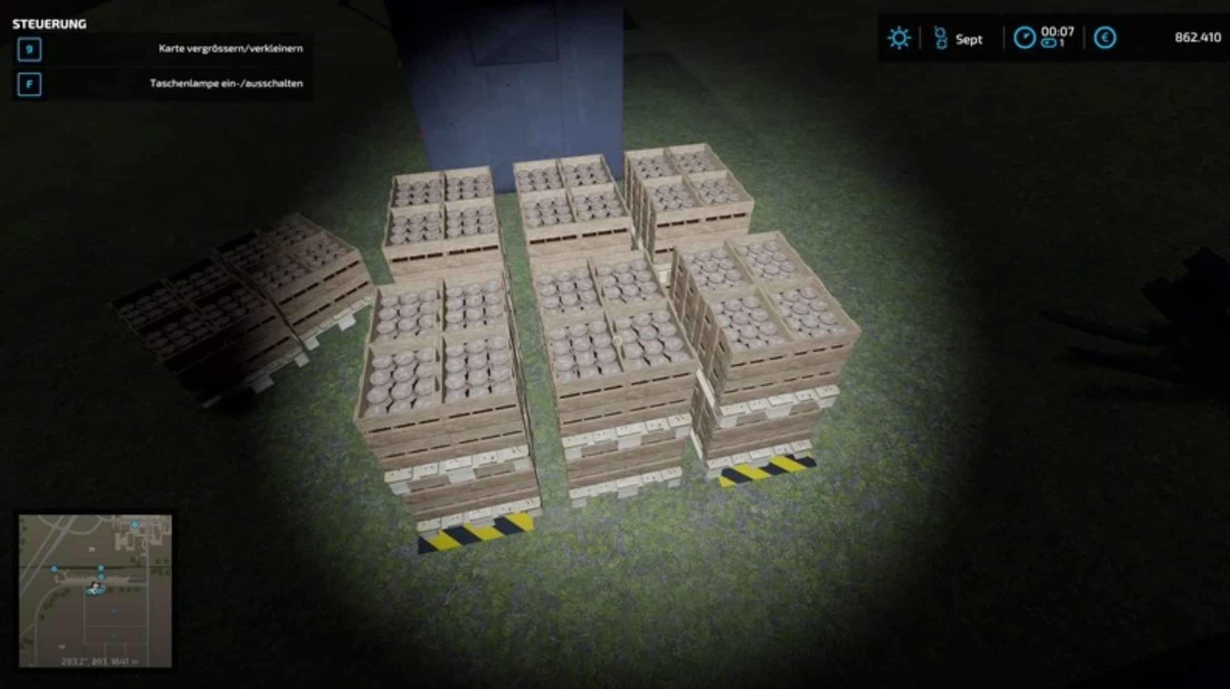 This is a package with 3 versch. Pallet generator places which depending upon choice either 4/6 or 12 pallets can produce. The places need a little more space than the original but is much more effective if you are stuck in the field for a long time and can not remove any pallets.