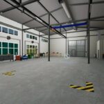 Gate animation: The gate can be opened to allow large machinery access to the workshop.