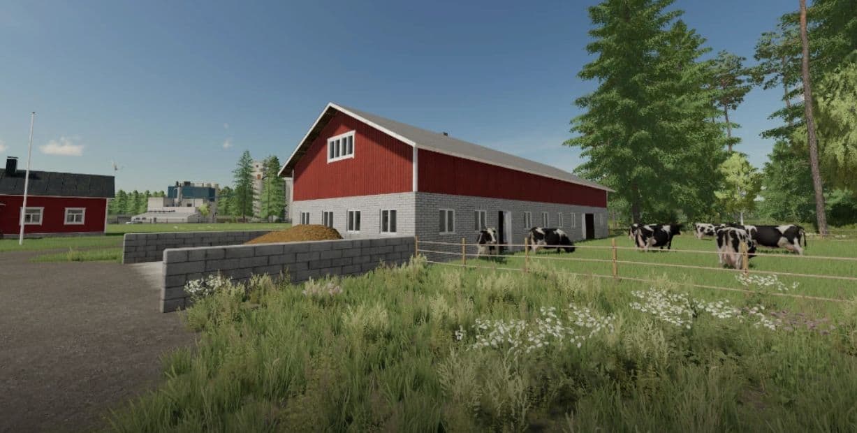This package contains old tie-stall dairy barns. Barns of this style were built in Finland in the mid-20th century and are an inseparable part of the Finnish countryside. Fewer and fewer of them are still in their original use today as agricultural demands increase, but like these, some still serve the needs of the animals thanks to upgrades made towards the end of the last century.