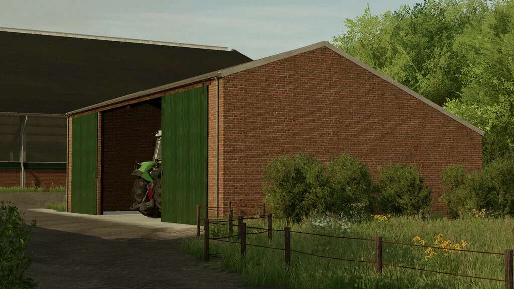 Farmhouse02 has a big door and you can park some medium sizes machinery in it. Cost: 100.000€