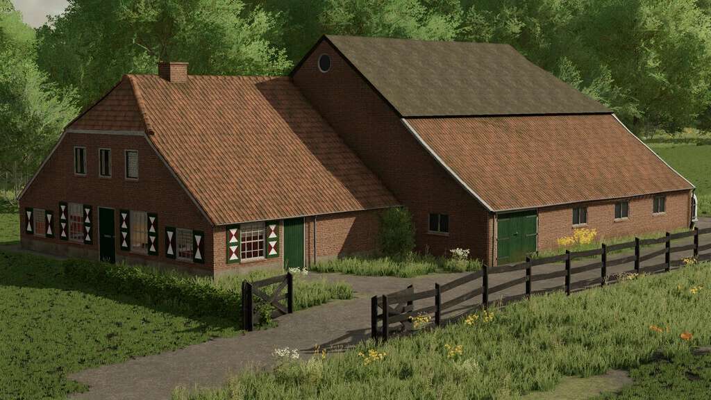 This packages contains two farmhouses and one old shed with doors in a North-West European style.