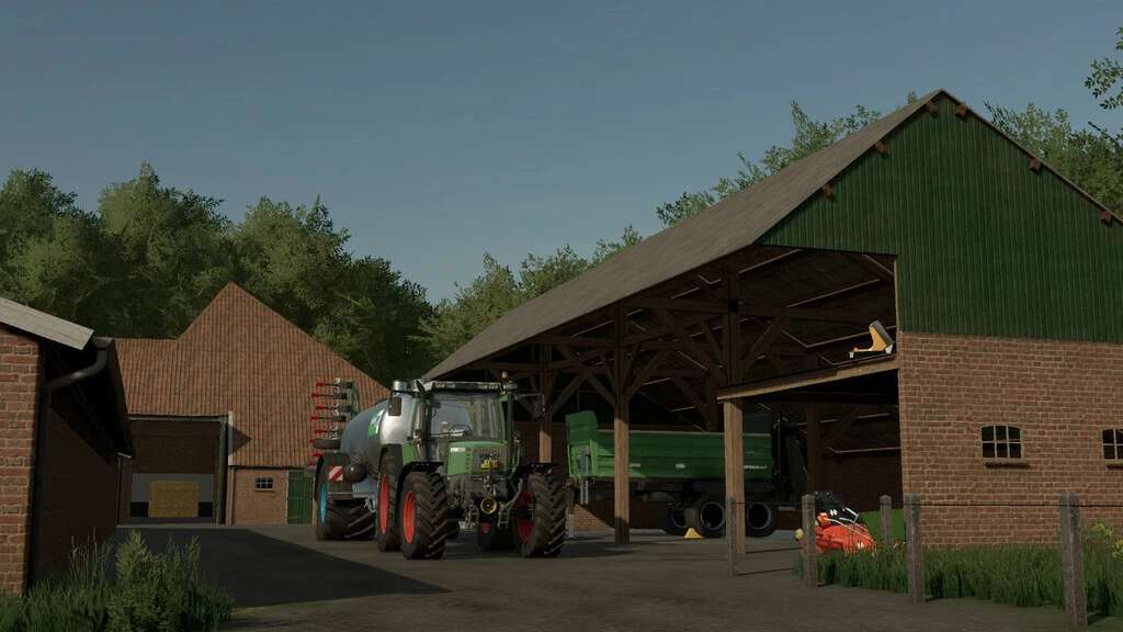 Farmhouse02 has a big door and you can park some medium sizes machinery in it. Cost: 100.000€