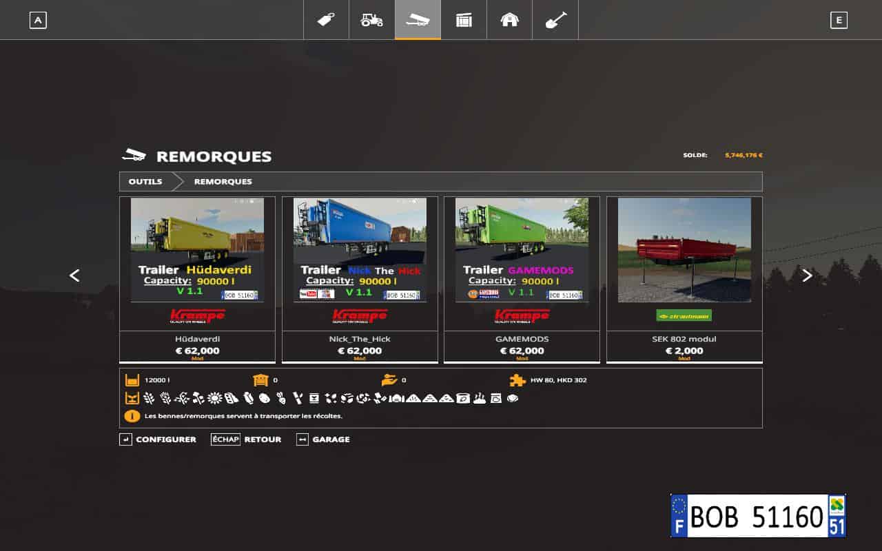 HELLO to all.I present you the pack 3 trailers SPECIAL Youtubers.Dossier has decompress to access the 3 files MODS.les 3 Trailers Youtubers are: GAMEMODS / Nick The Hick / Hüdaverdi …… CHOICE colors … rear attachment ….. CAPACITY: 90000 l.