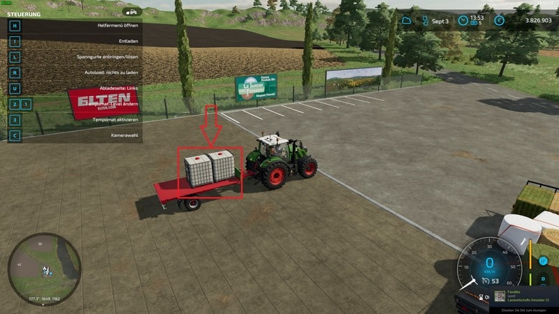Drive next to the pallets and then with [R] you can start the loading process.