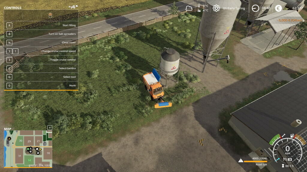 A freely placable salt silo, which can be used to fill up salt spreaders.