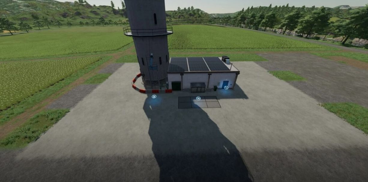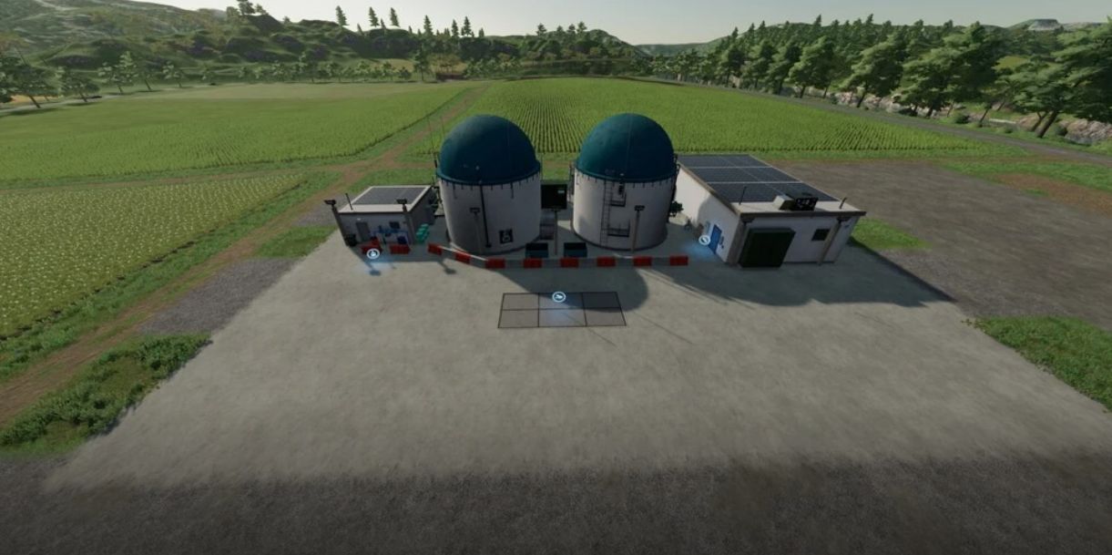 The BGA is set up more according to reality and produces electricity, methane and digestate from the electricity charges a water pump which then pumps water into the warehouse.