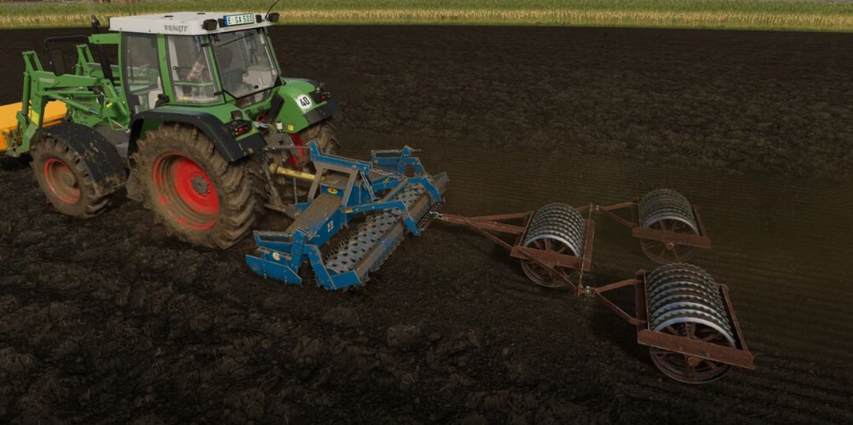 The RKE was the first rotary harrow from the Rabewerk (hence the type designation Rabe KreiselEgge), it was specially developed for difficult conditions on stony clay or marsh soils and was built from 1977 to 1985. The unique selling point of the RKE compared to the competition (at that time mainly Lelyterra) were the bearing seats inside of the frame, instead of in the trough and on the transmission cover of the power harrow, which allows precise alignment of the bearings. In addition, all components of the RKE were generously dimensioned, and as is usual with almost all Rabe rotary harrows, the packer roller is pre-loaded by a strong spring, which means that the power harrow can move upwards more easily when dealing with larger stones. Thanks to these developments, the RKE has been characterized by a very good durability over the years.