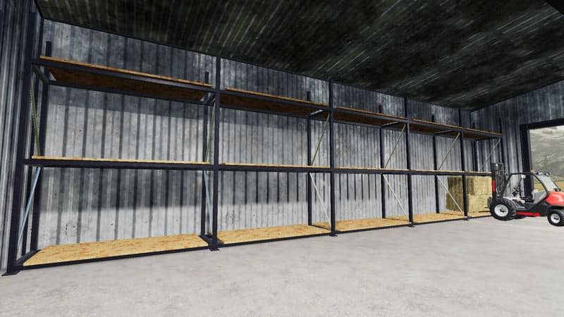 The hall offers a space of 60 pallets, the size of it was planed with the original liquid fertilizer tanks. You can also store bales or other stuff instead of just pallets.