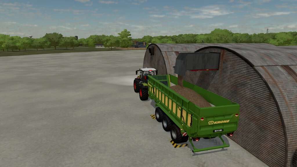 Unloading is done from the back of the extension shed. The Rootcrops heap is animated and will eventually rise/lower when the storage is filled/emptied.