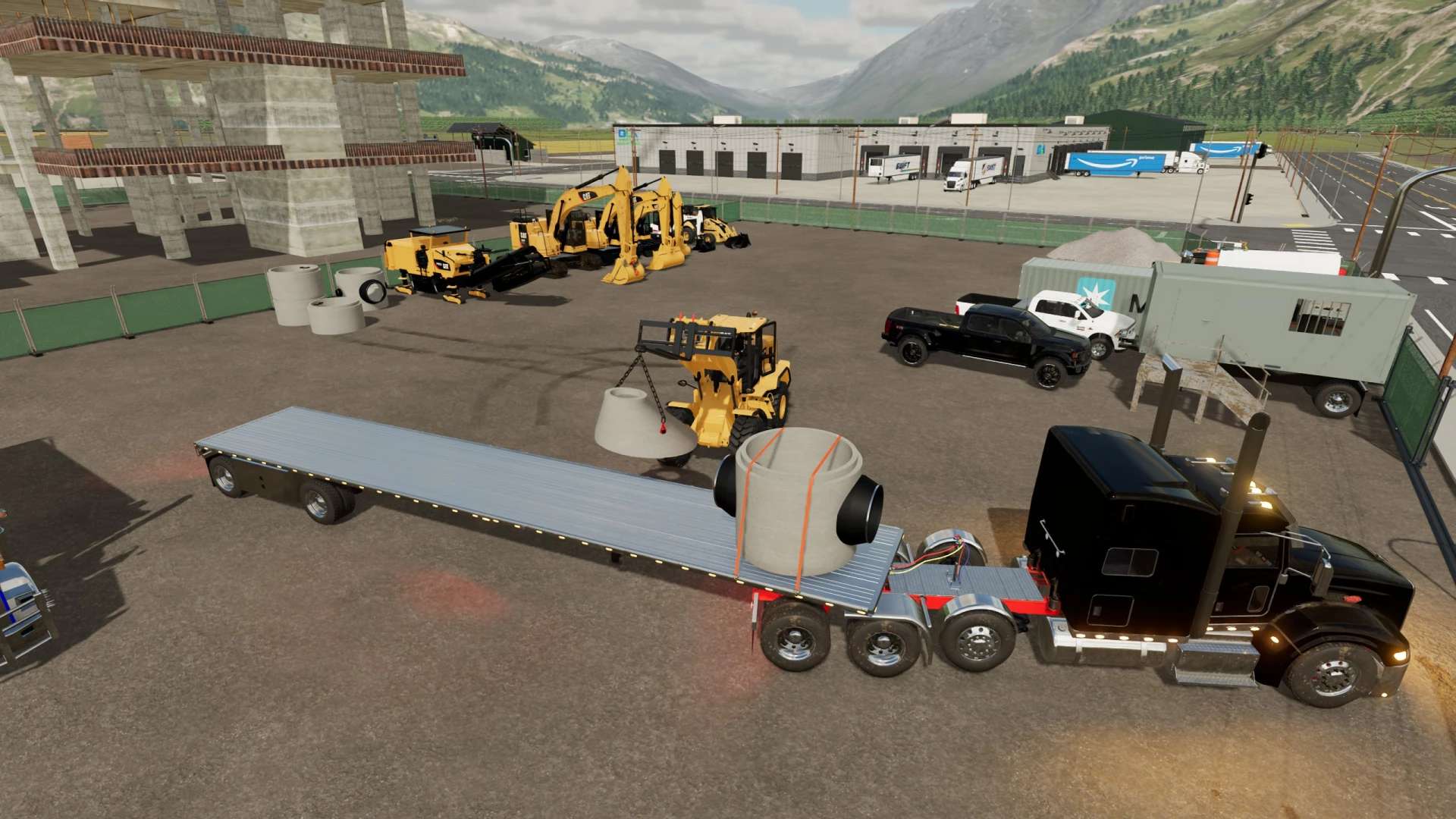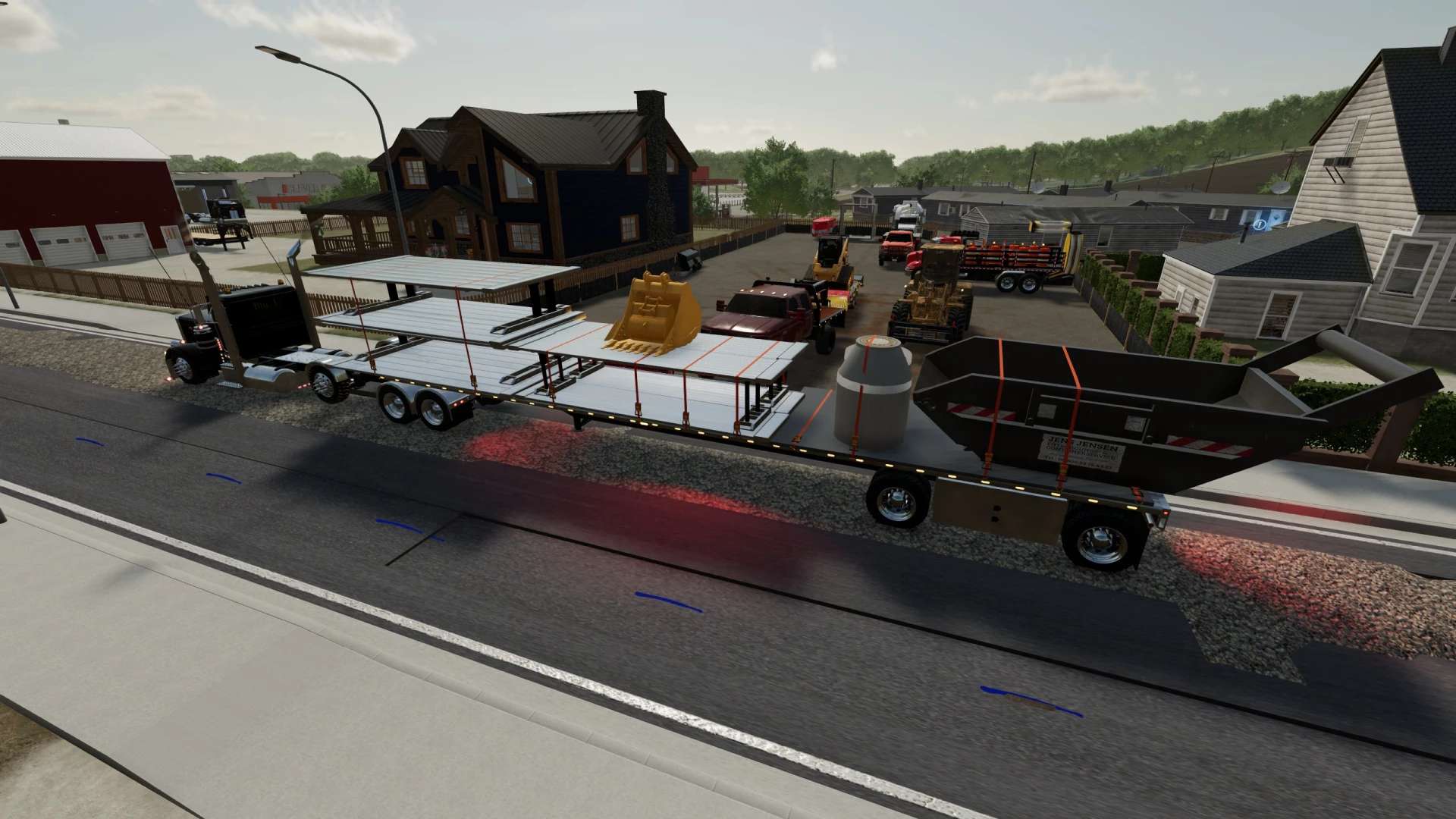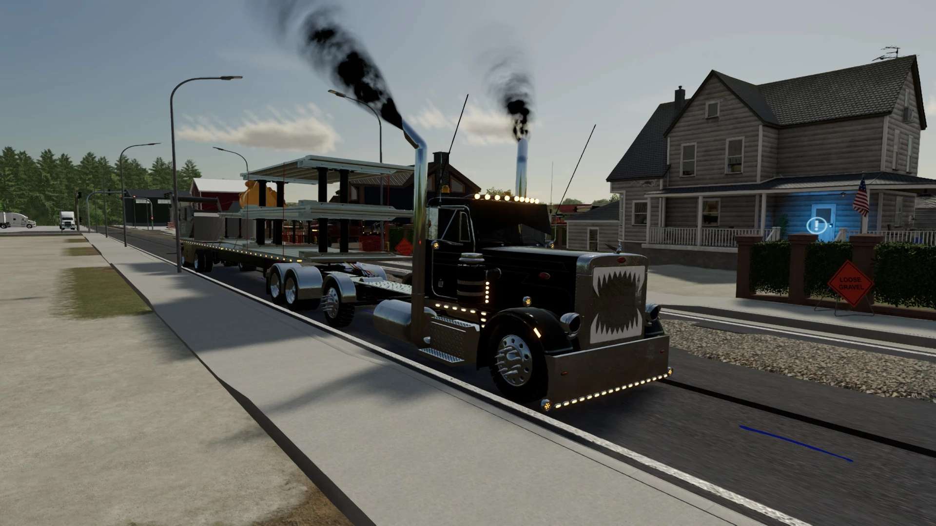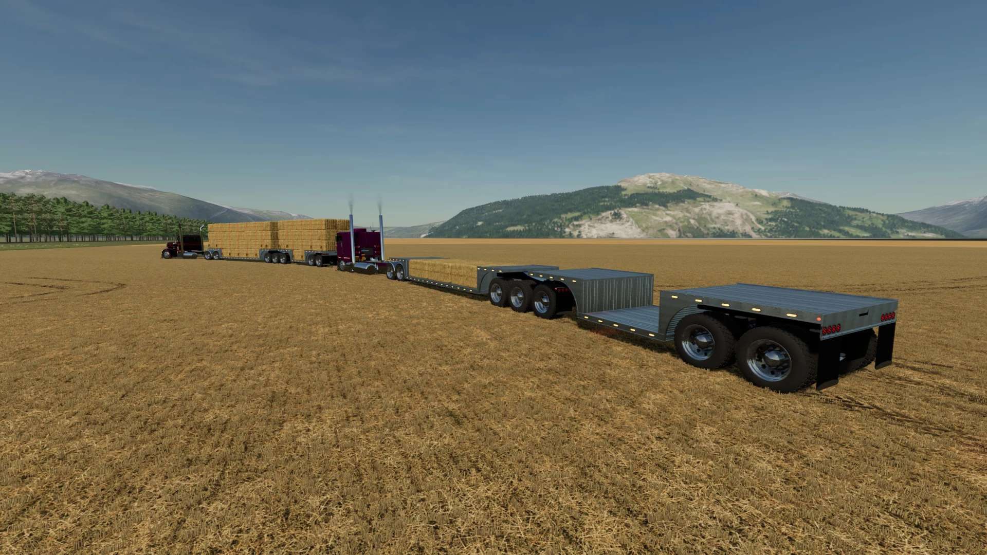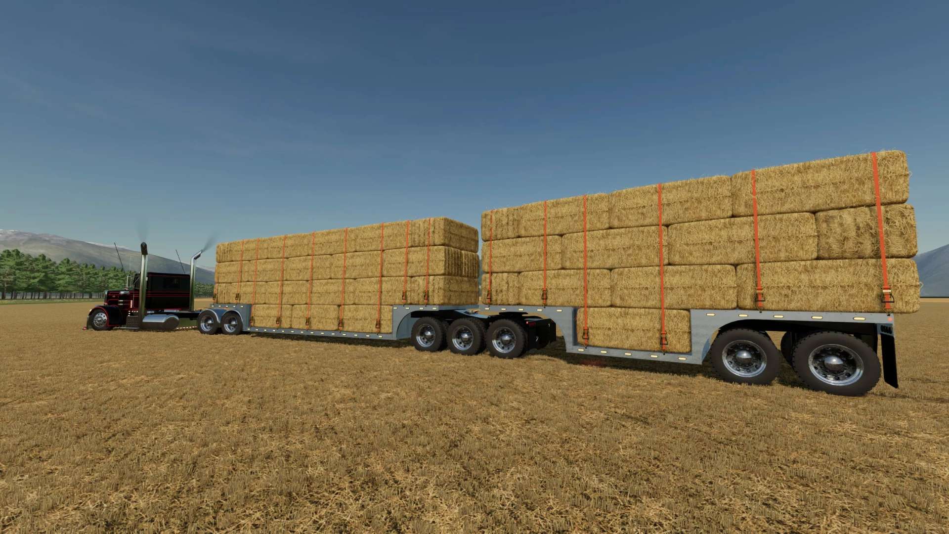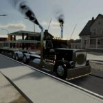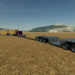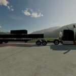 This is my pack of Reitnouer flatbed trailers. It also includes Reitnouer Maximizer Hay Train trailers. The flatbeds come in 20′, 40′ and 53′ with MANY different axle configurations. The axles will slide with mouse controls, and the kingpin is slightly adjustable with mouse controls as well. Drop axles can be raised or lowered using the fold function. This mod, like most of my mods is a WIP. It is a bit messy and I add stuff as I think of them and I am constantly tweaking and updating it. As always, let me know if you have any suggestions or feedback.