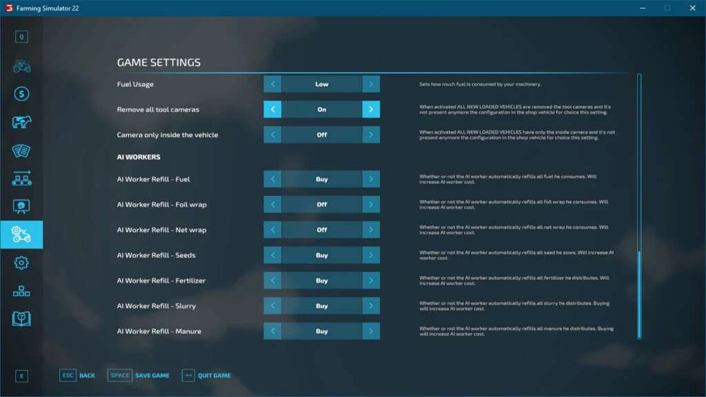 – Added the game configuration for settings all the vehicles