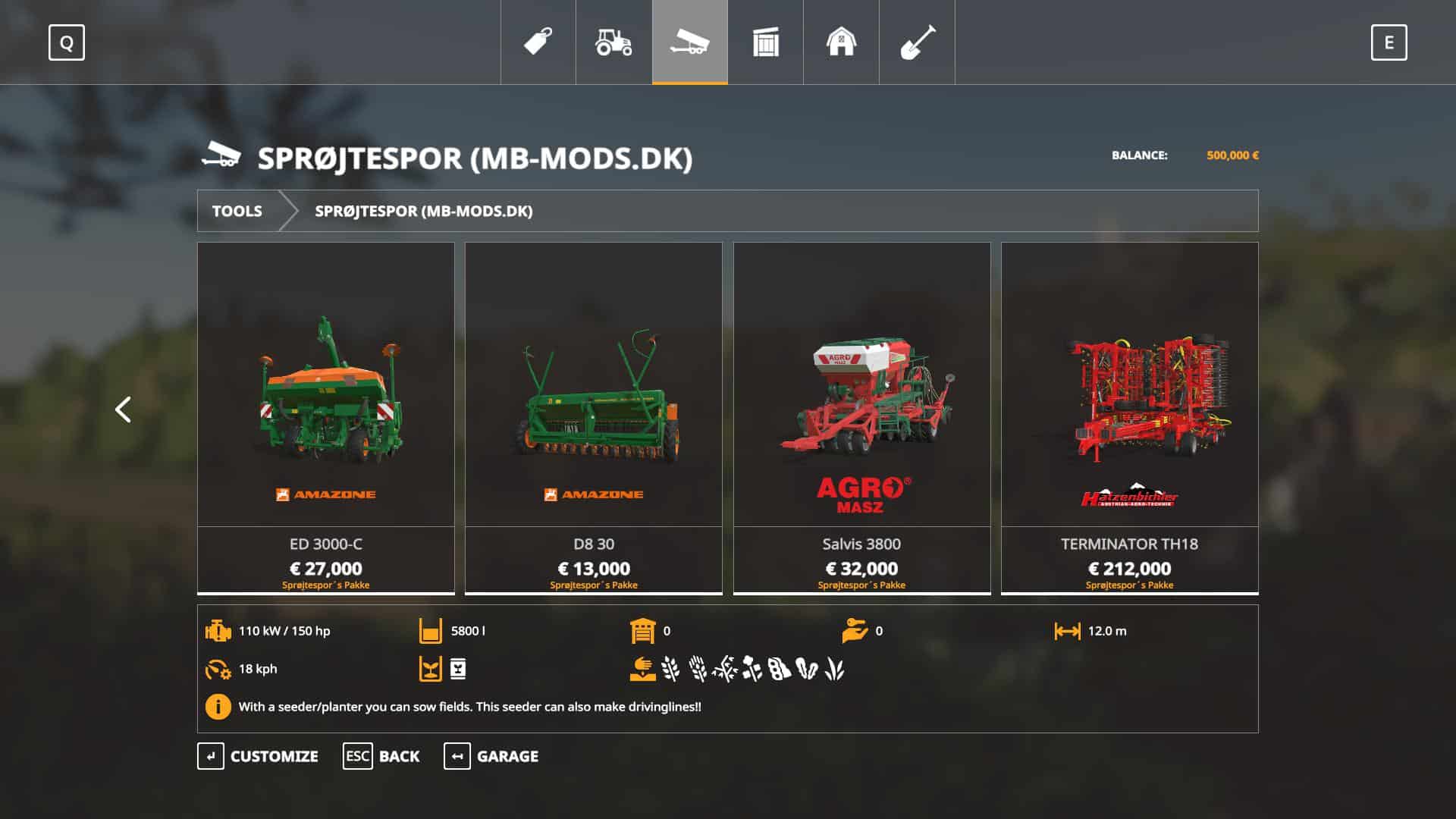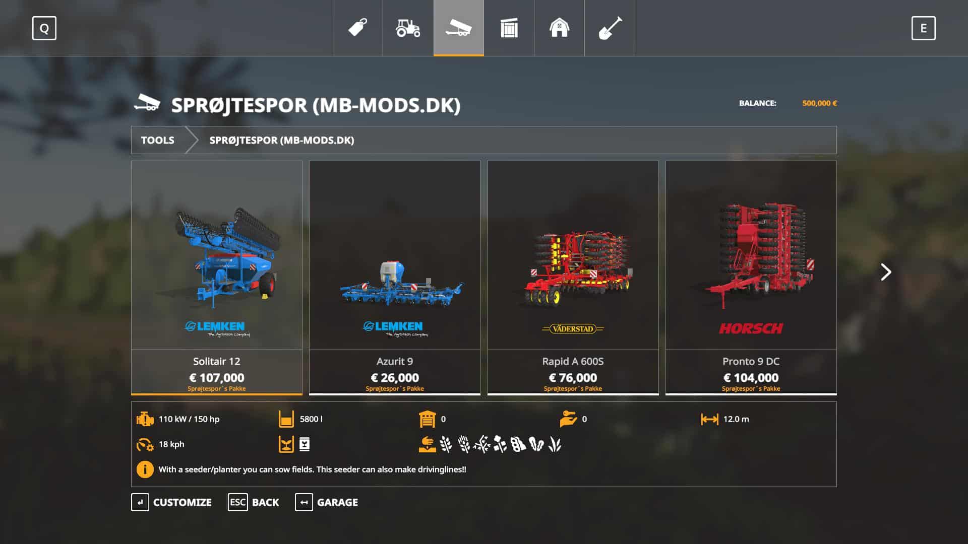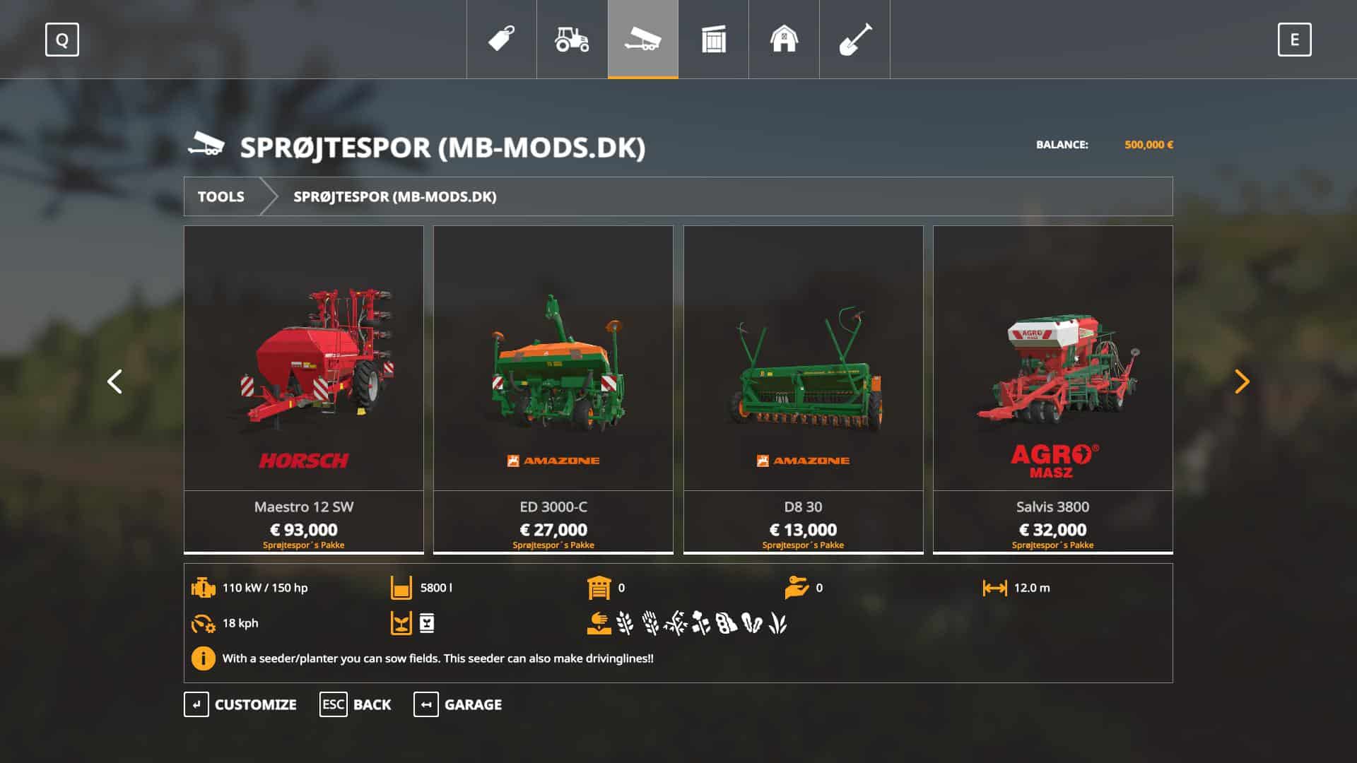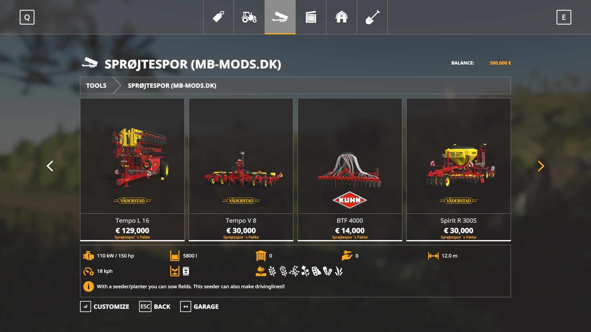 This pack gives you the option to make drivinglines with your seeder.