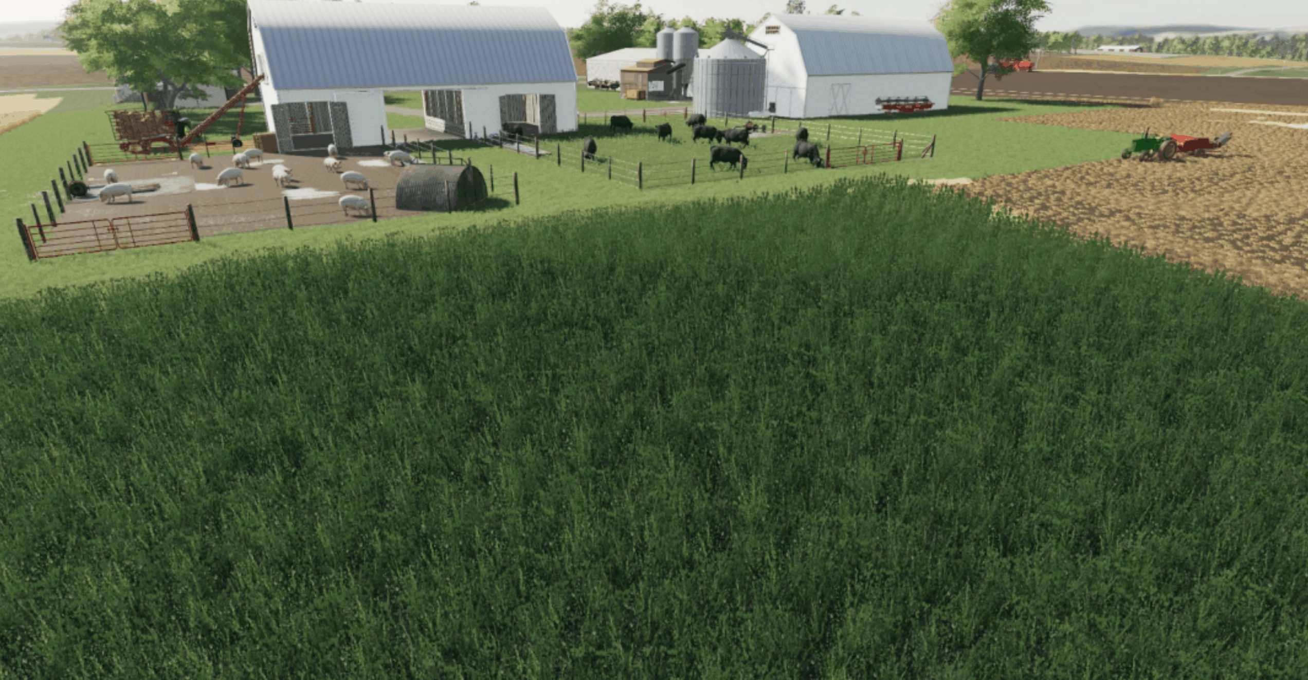 Added Cow/Pig barn holds both in same barn. To setup your own flatten area first then put down old cow barn then match pig pasture to barn. Watch videos on my youtube channel to setup.