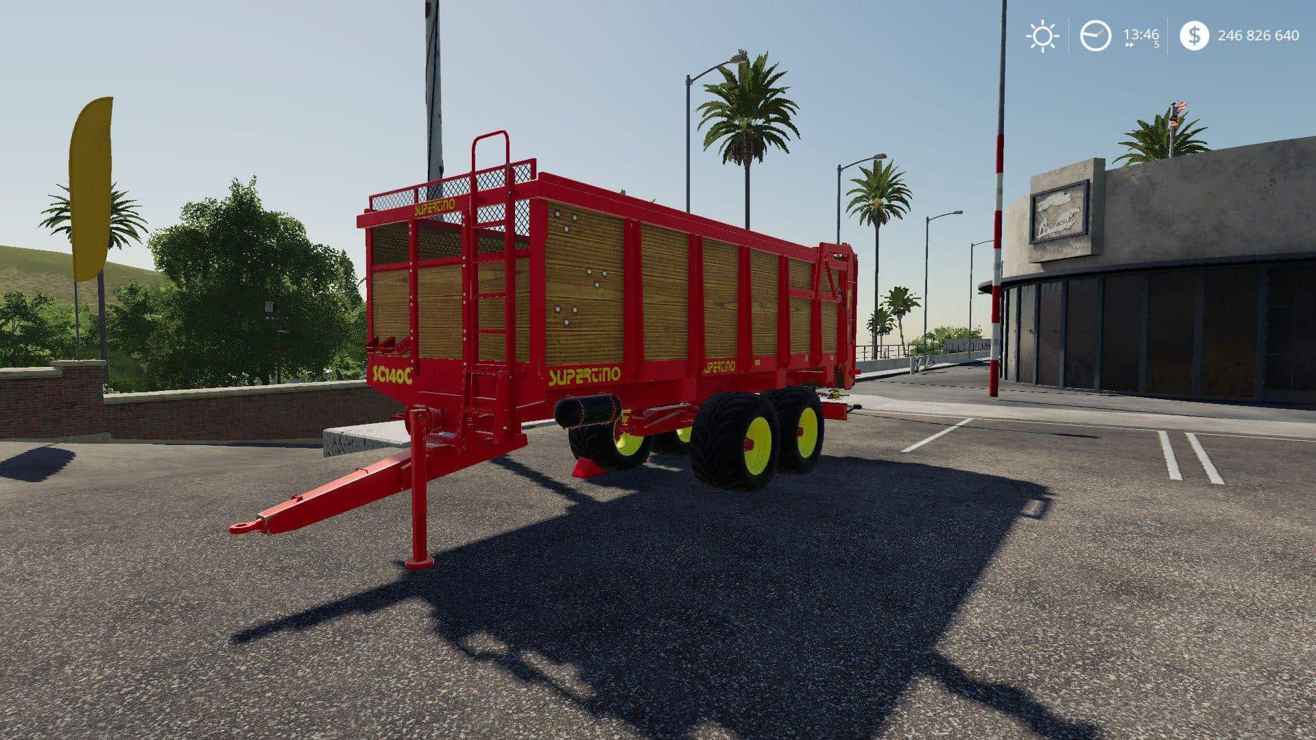 Supertino SC 140C trailer mod for Farming Simulator 2019, PC only. Details of the mod: – working width 10m; – price 26 000 €; – service 50 € / day; – Required power 150 hp; – Max. working speed 20.