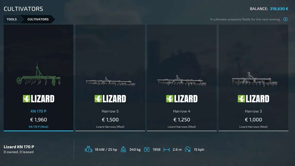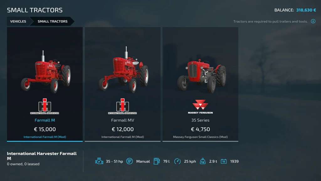 With heavy customization for your specific wants, this mod will restrict your buying options to the vehicles available at the time of your game. With a starting year as low as 1950, you can work your way from tractors with less than 50 horsepower and plows with 2 furrows, to the new and powerful machinery of the modern agricultural world.