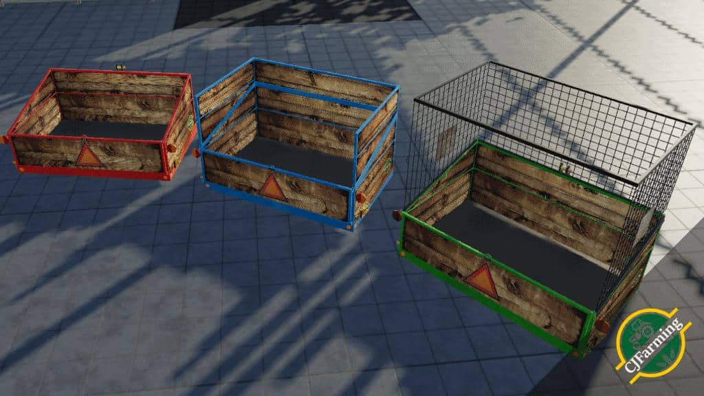The transport container by CJFarming offers 3 variants to prove useful. The first of them holds 4,000 liters of grain as well as grass, hay and straw. The middle one has a volume of 8000 liters and with the third variant it is possible to comfortably transport unwieldy, long or bulky objects such as wood. All three variants also have spangles and a modest color choice between new and old style, or new or used. Furthermore, the load can be easily and quickly picked up from the ground with the integrated bucket function.