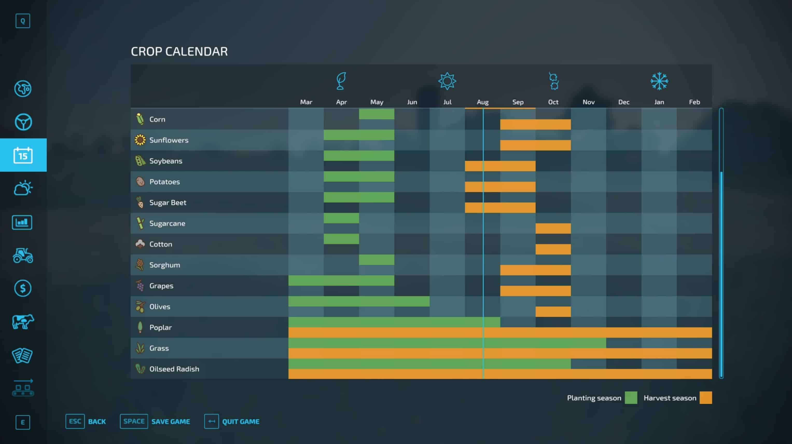 The AI doesn’t plant every field in year 2 but the crops still follow the proper planting and harvest cycles.