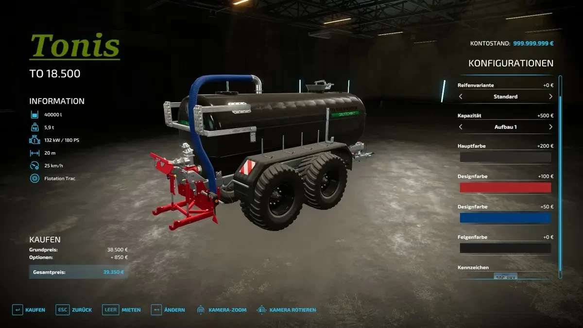 Various color selections were installed and you can also work from real to unreal (capacity selection 20000 l – 60000 l) with a working width of 20m.