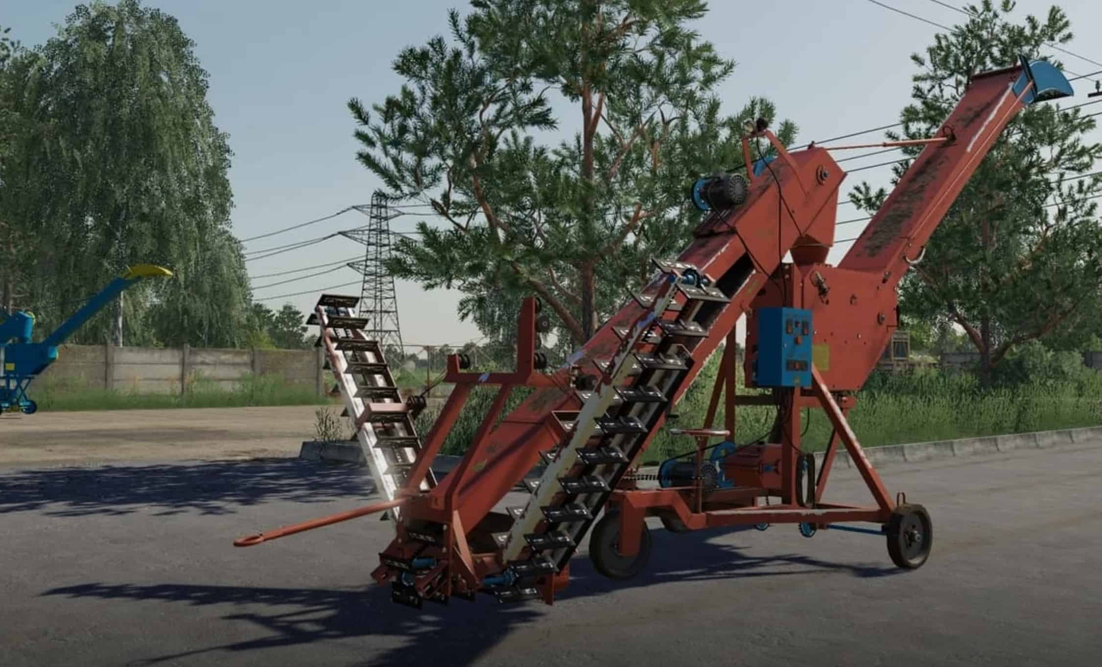 A mobile mechanism for loading grain seeds from the ground into the bodies of trailers or trucks.
